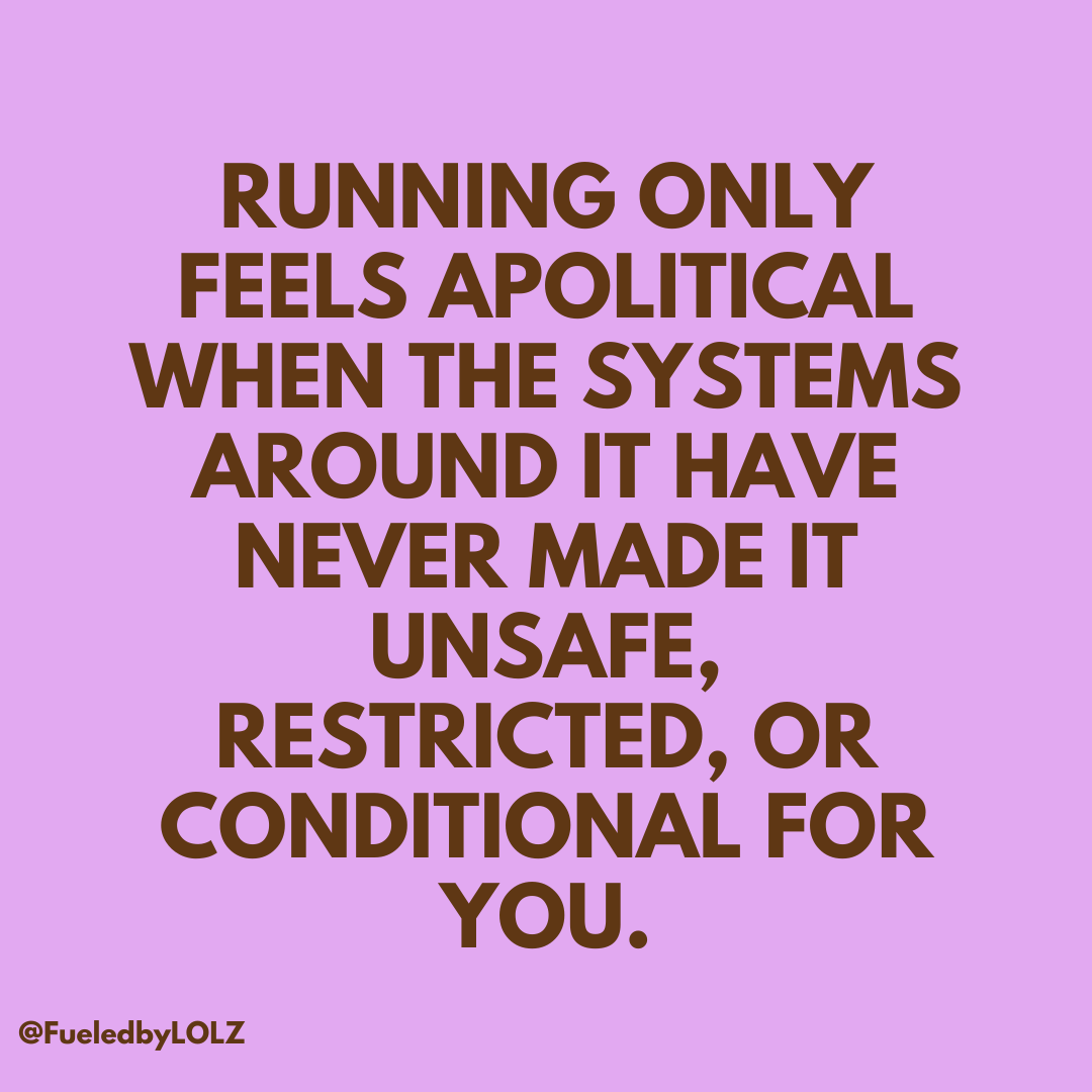 I understand the instinct behind that reaction, that running isn’t political, but I also think it depends heavily on whether the systems around you have ever made running feel unsafe, restricted, or conditional.